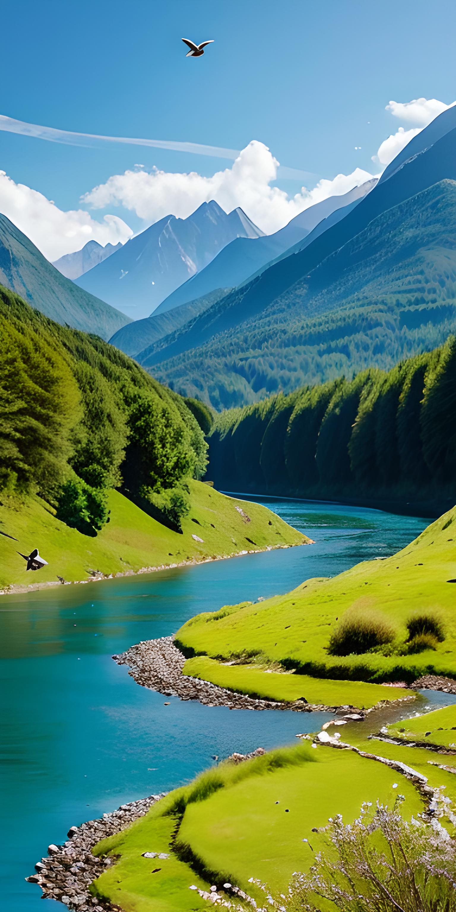 手机、壁纸、自然美景、风景、山川、水流、远山、美女、仙女、古风、唯美、清新、自然、灵动、优美、绰约、鸟儿、羽毛、翅膀、群鸟、自由、天空、蓝天、