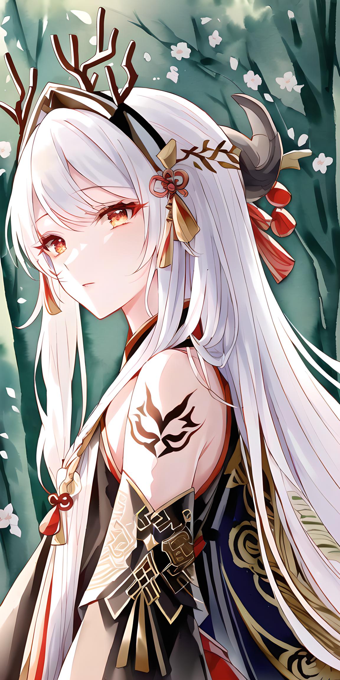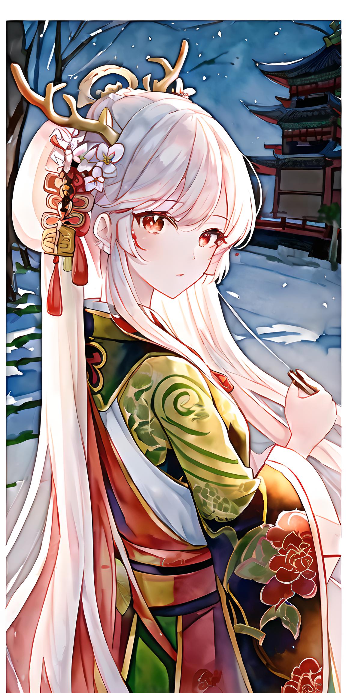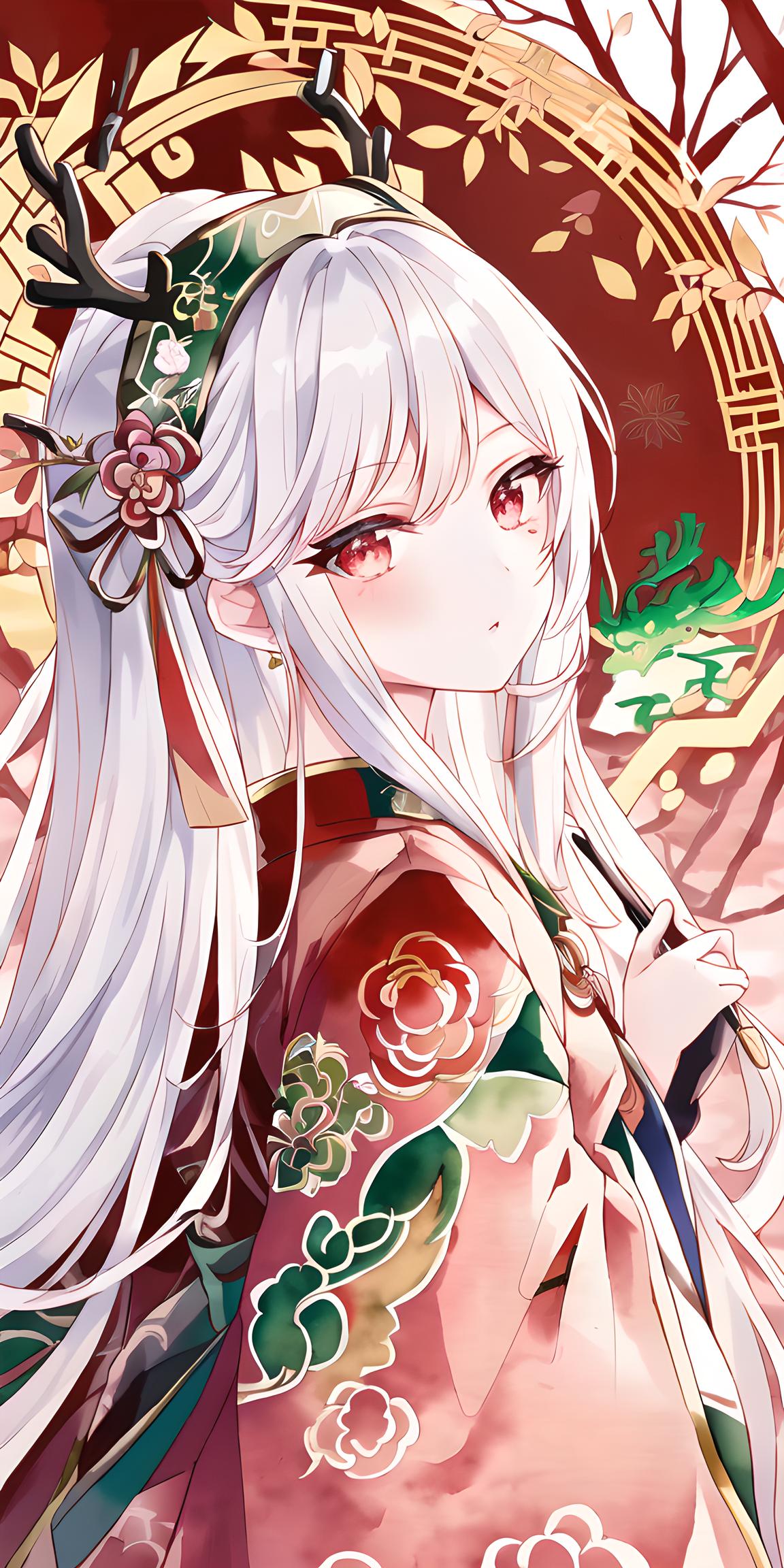 最高品质,极致细节,精致的五官刻画,(精致的头发刻画),(精致的眼睛刻画),白色红色渐变的长发,精致的发簪,((棕色的鹿角)),((奢华的头饰)),精致的汉服,((重重叠叠的衣服)),贵重的衣服,((衣服上复杂的金色花纹)),衣服上精致的凤凰,红唇,桃花眼,睫毛,((白鹿少女)),4k画质,绚丽的光影,丁达尔效应,(飘逸的长发),((白色发带)),华丽的场景,侧脸,(温柔),((高耸的树木)),((唐代古建筑)),((盘旋在天空的青龙)),((脸上红色的纹身)),((高冷)),(((侧脸特写)))