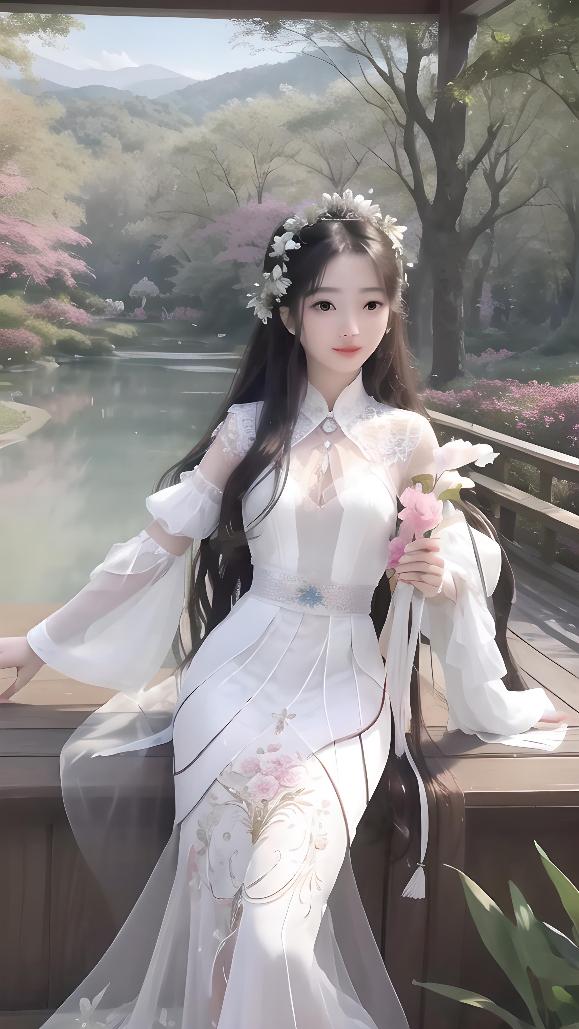 白的碎花长裙