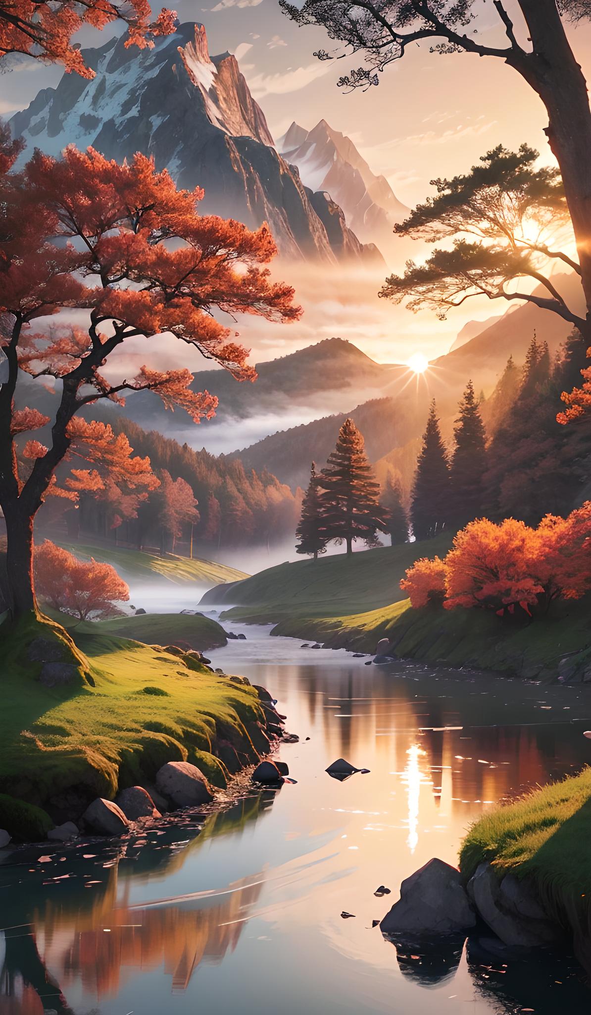 落日余晖的山里