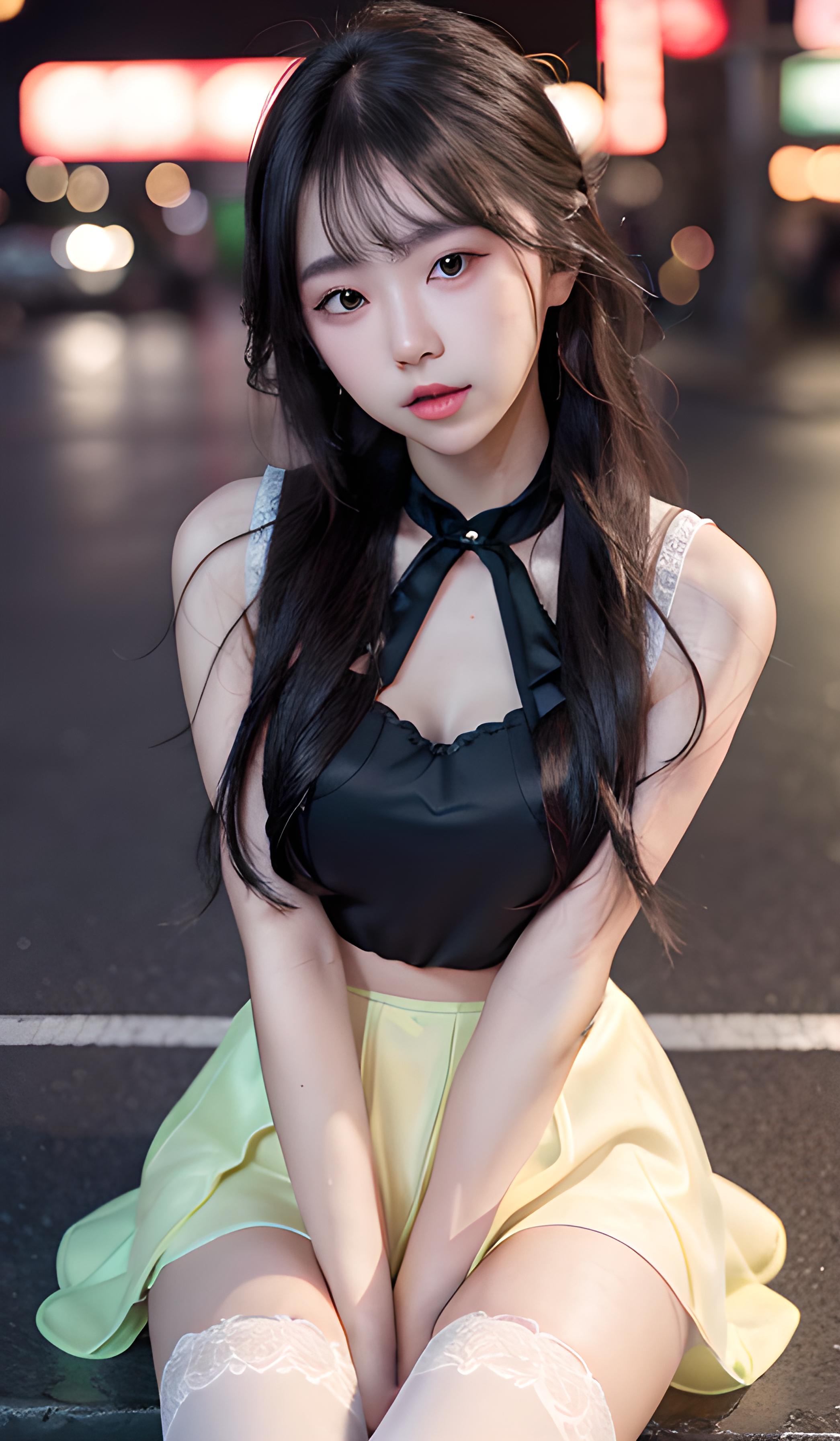 敞开衣领,黄色蕾丝边超短裙,女高中生,坐在摩托车上,展示完美S型身材,(坚定的眼神)(可爱),精致的瓜子脸,过膝长袜,长发齐腰,长发飘逸,淡笑,发丝细节,细腻的全身刻画,细腻的脸部刻画,最佳画质,高分辨率,细致背景(霓虹街道),霓虹灯光,细腻刻画,精致细节,丰富细节,脸部强化,黄昏,傍晚,大汗淋漓,湿透全身,