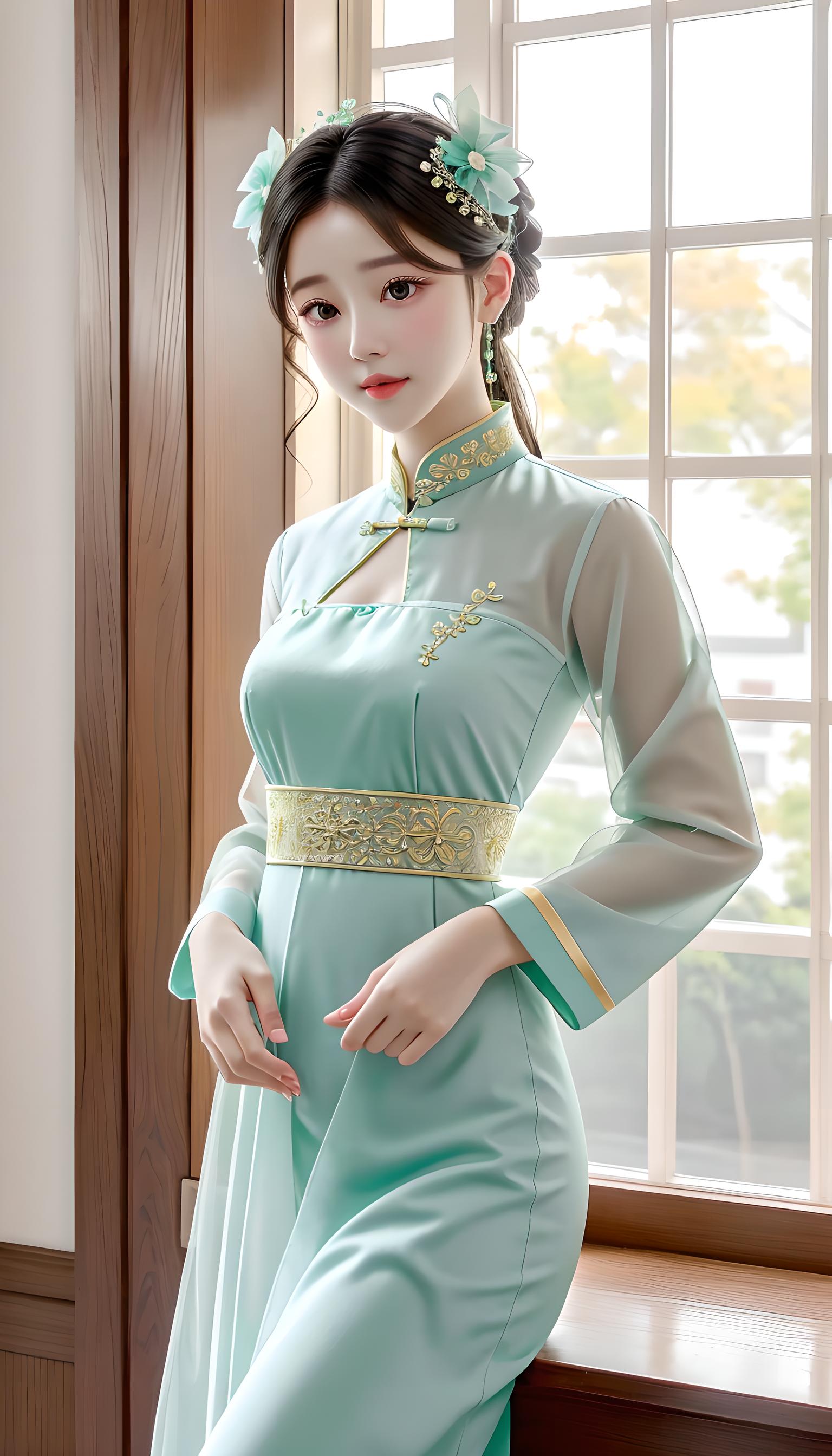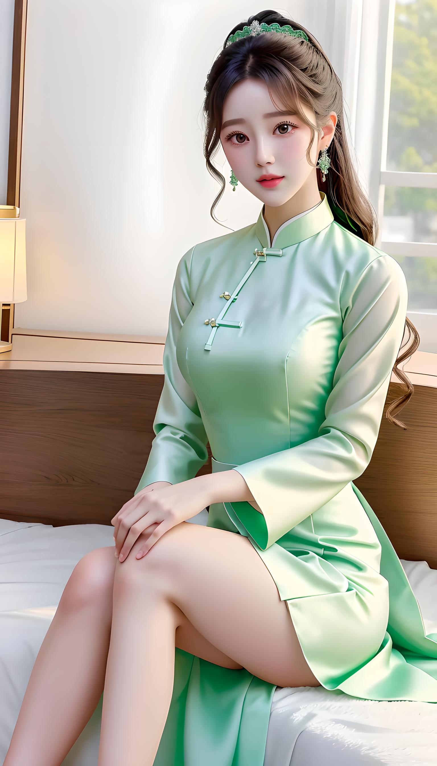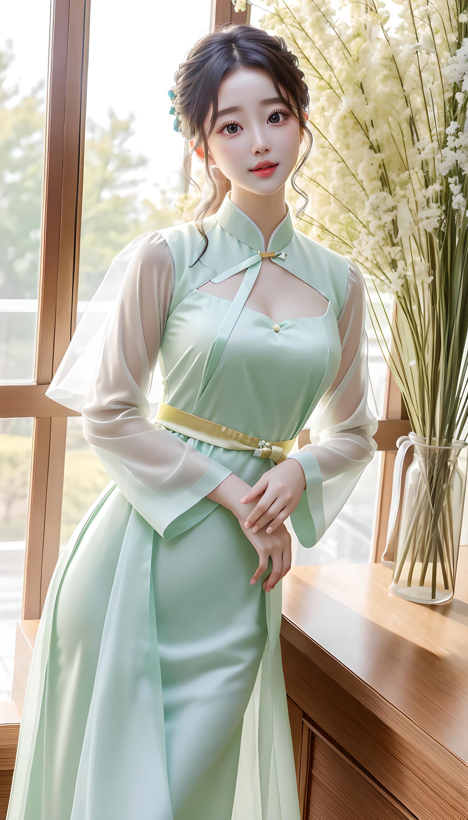 a beautiful women in light green
