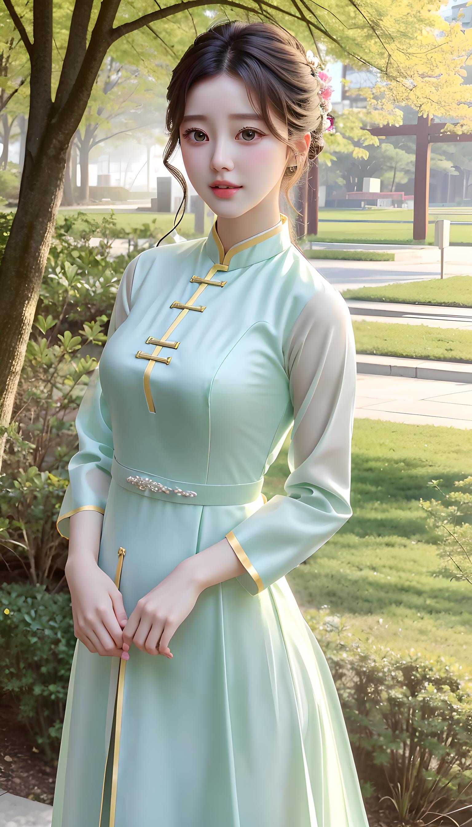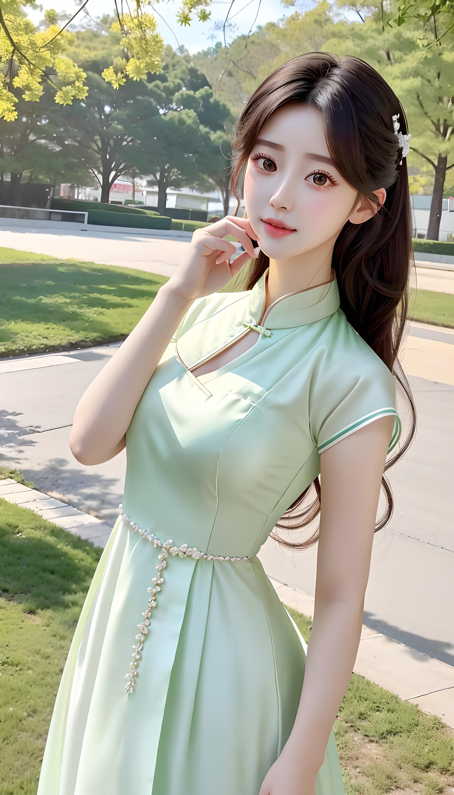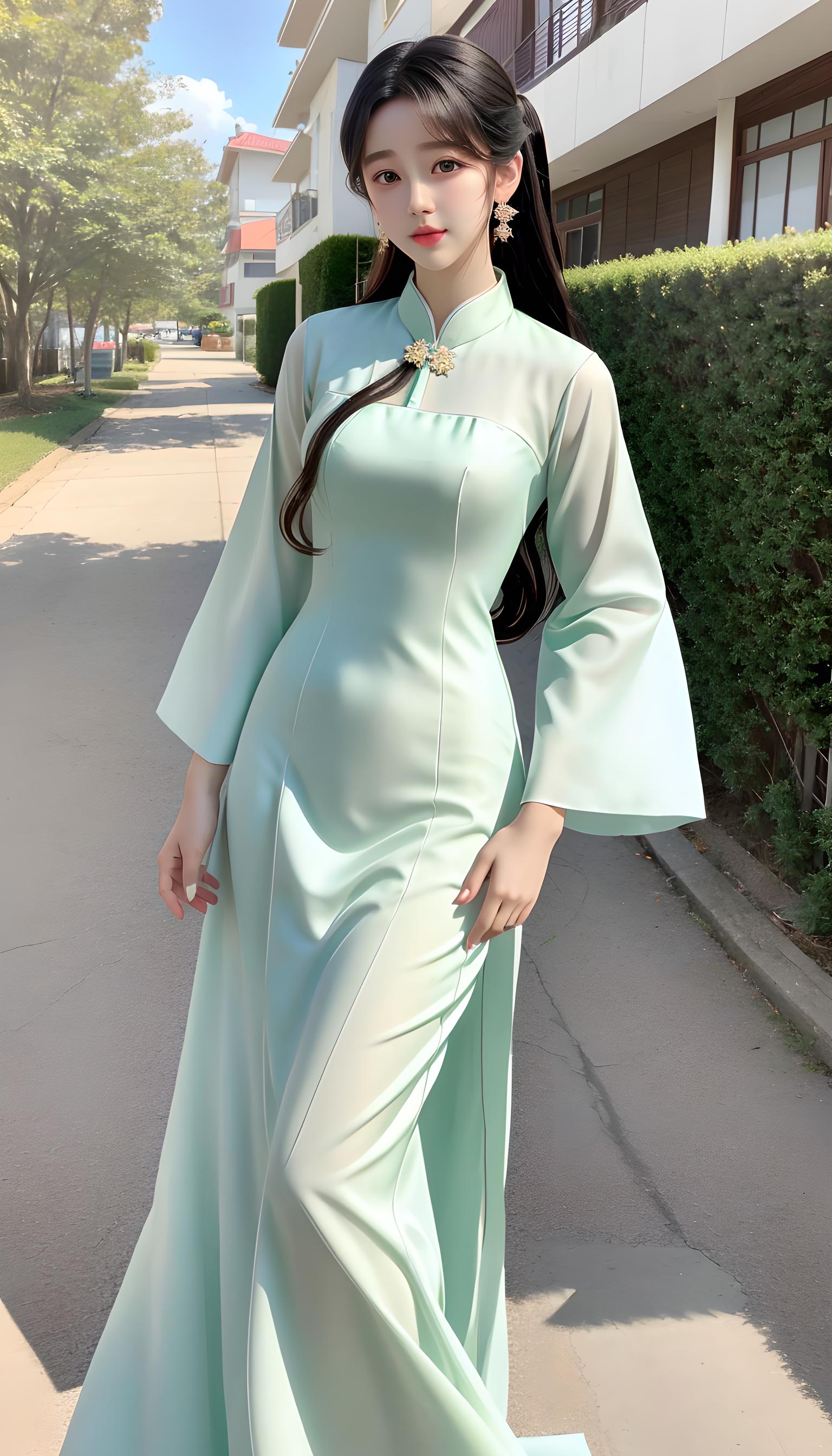 a beautiful women in light green