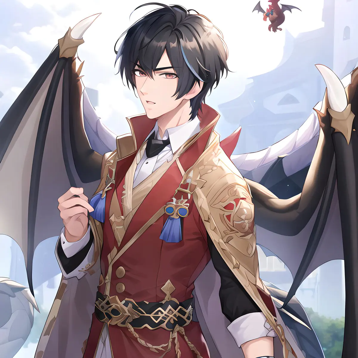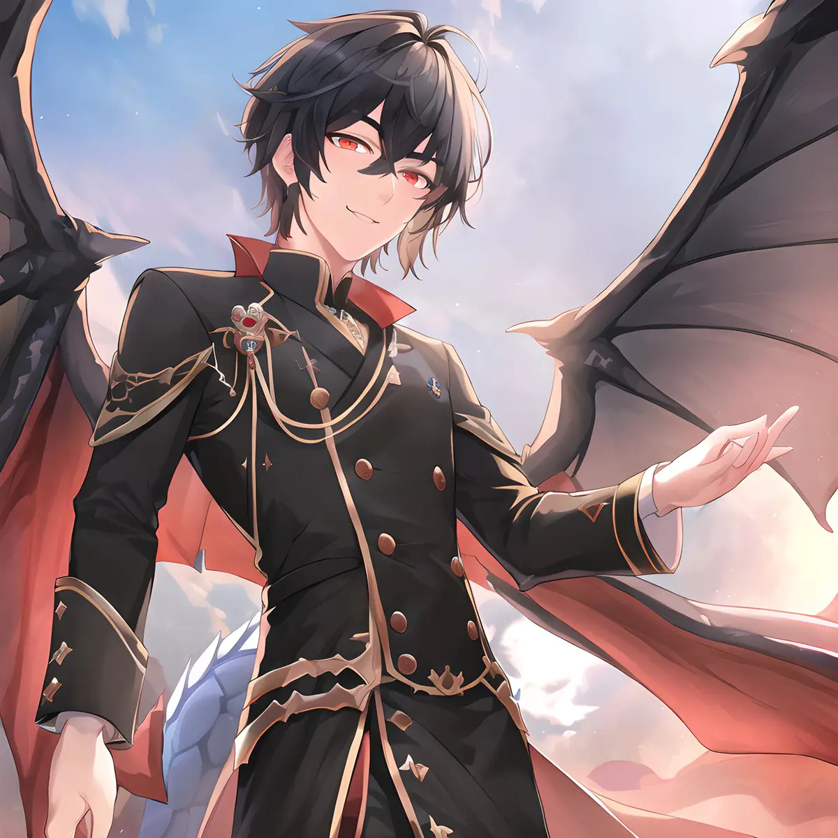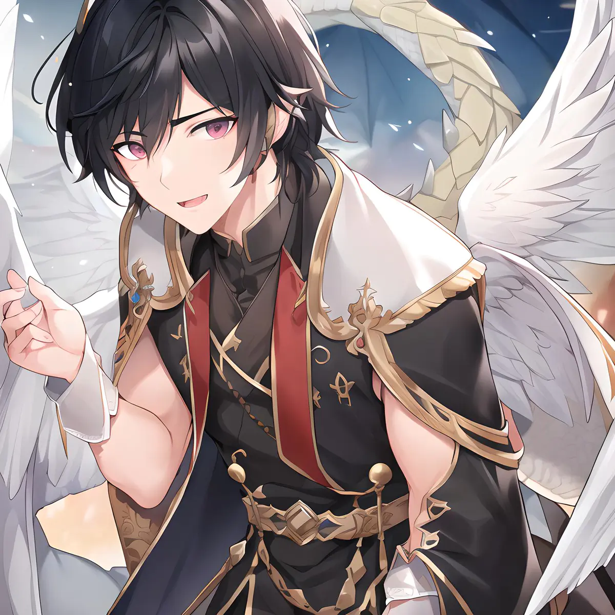 (extremely detailed CG unity 8k Handsome boy with black hair, pixel girl,Dragon, Wings of Angels