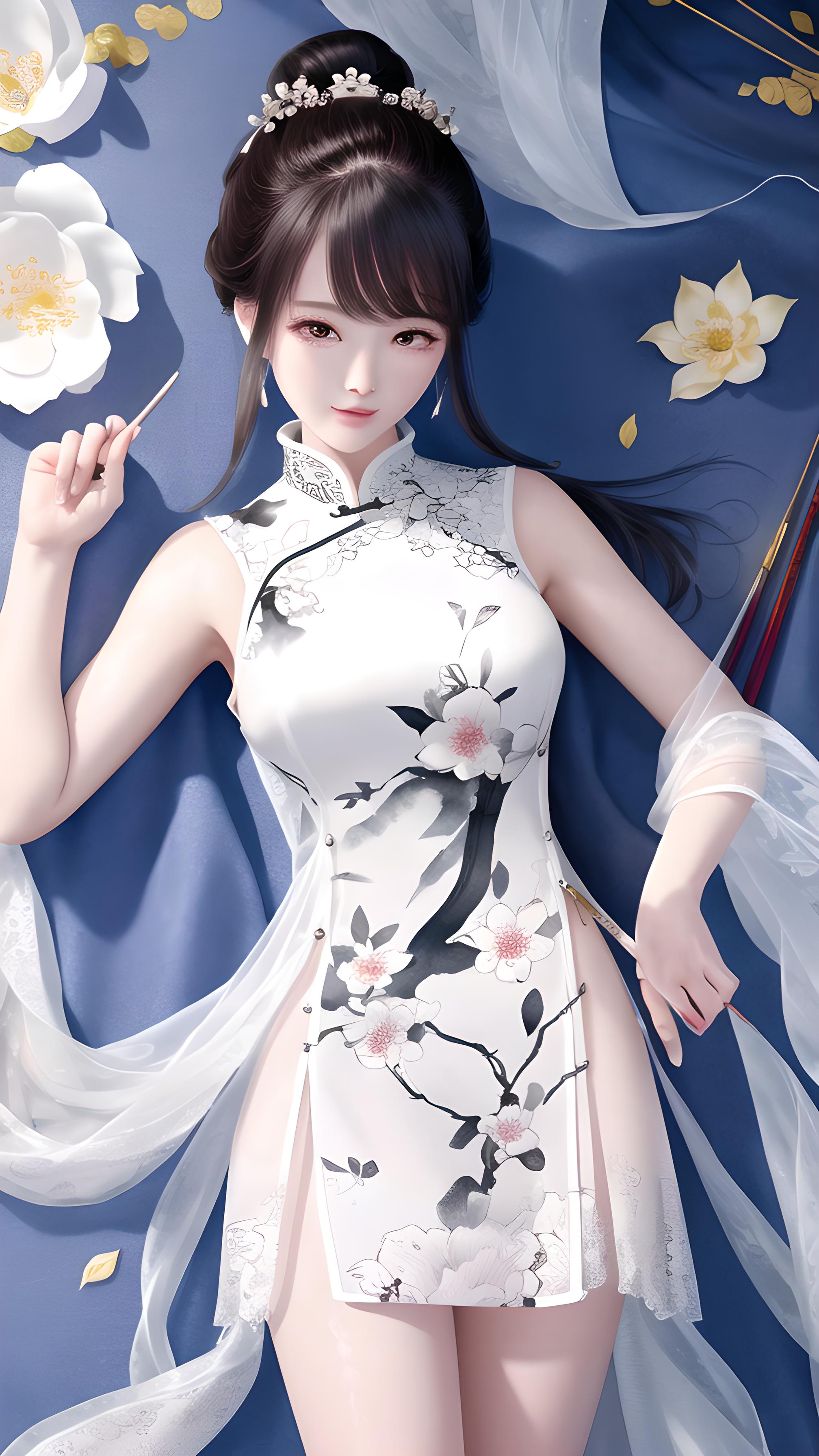 白色蕾丝无袖旗袍