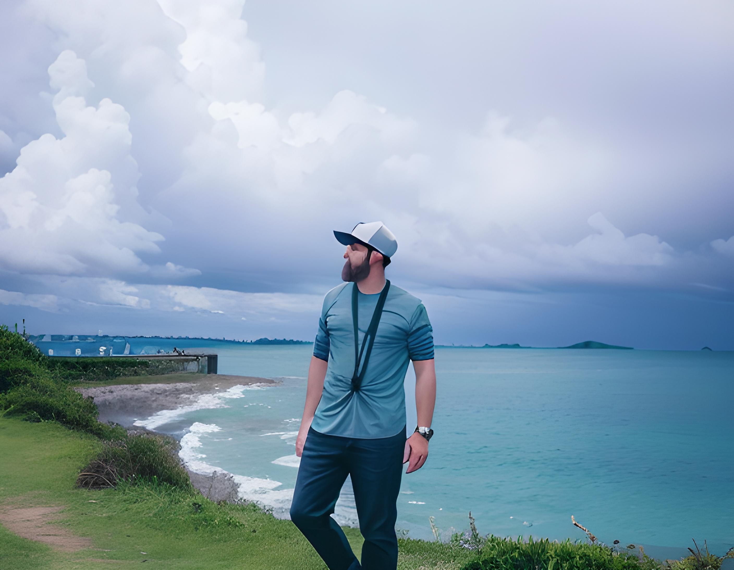 1boy,beach,beard,belt,black_pants,blue_sky,boat,bridge,building,bush,cliff,cloud,cloudy_sky,day,denim,facial_hair,field,grass,grey_sky,hat,hill,horizon,island,jeans,lake,landscape,male_focus,mountain,mountainous_horizon,mustache,nature,ocean,old_man,outdoors,pants,pool,realistic,river,road,scenery,shirt,shore,sky,sleeves_rolled_up,solo,standing,tree,wading,water,watercraft,waterfall,waves