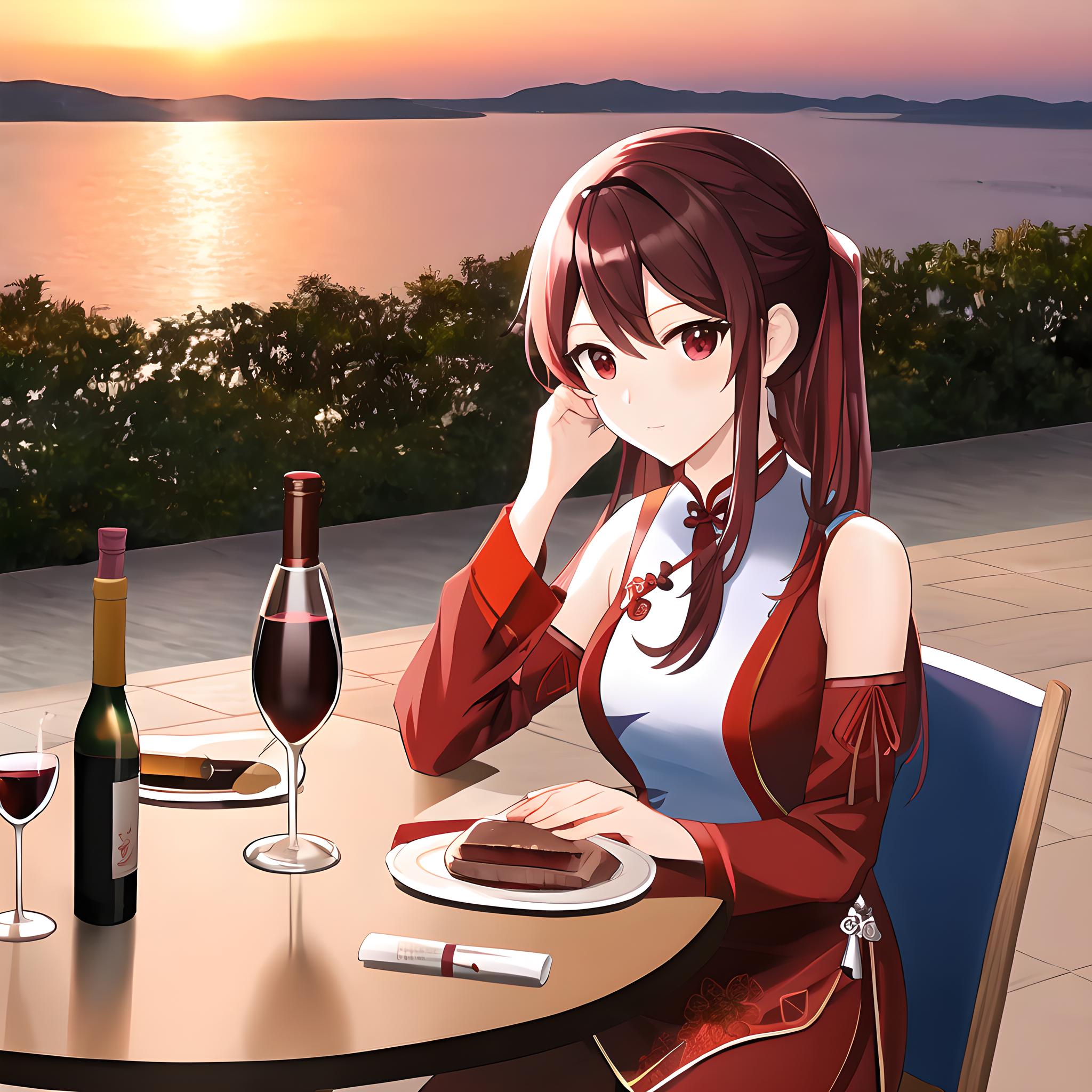 一位美若天仙倾国倾城女子,在海边的西餐厅饮酒发呆,
