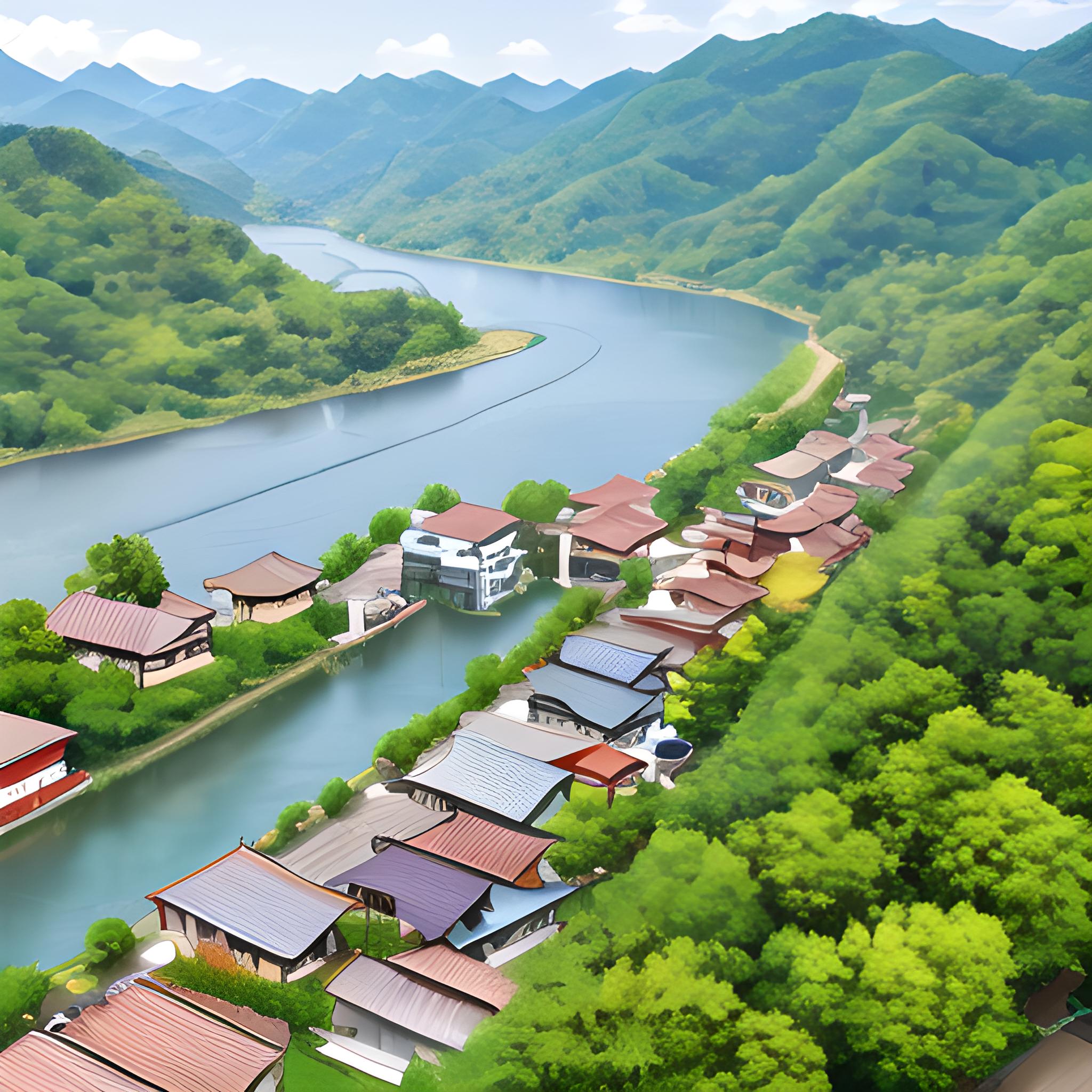 苗寨千户,户户相连,一江两边是苗寨木房,流水,景色繁华,景色清晰,画质8K,