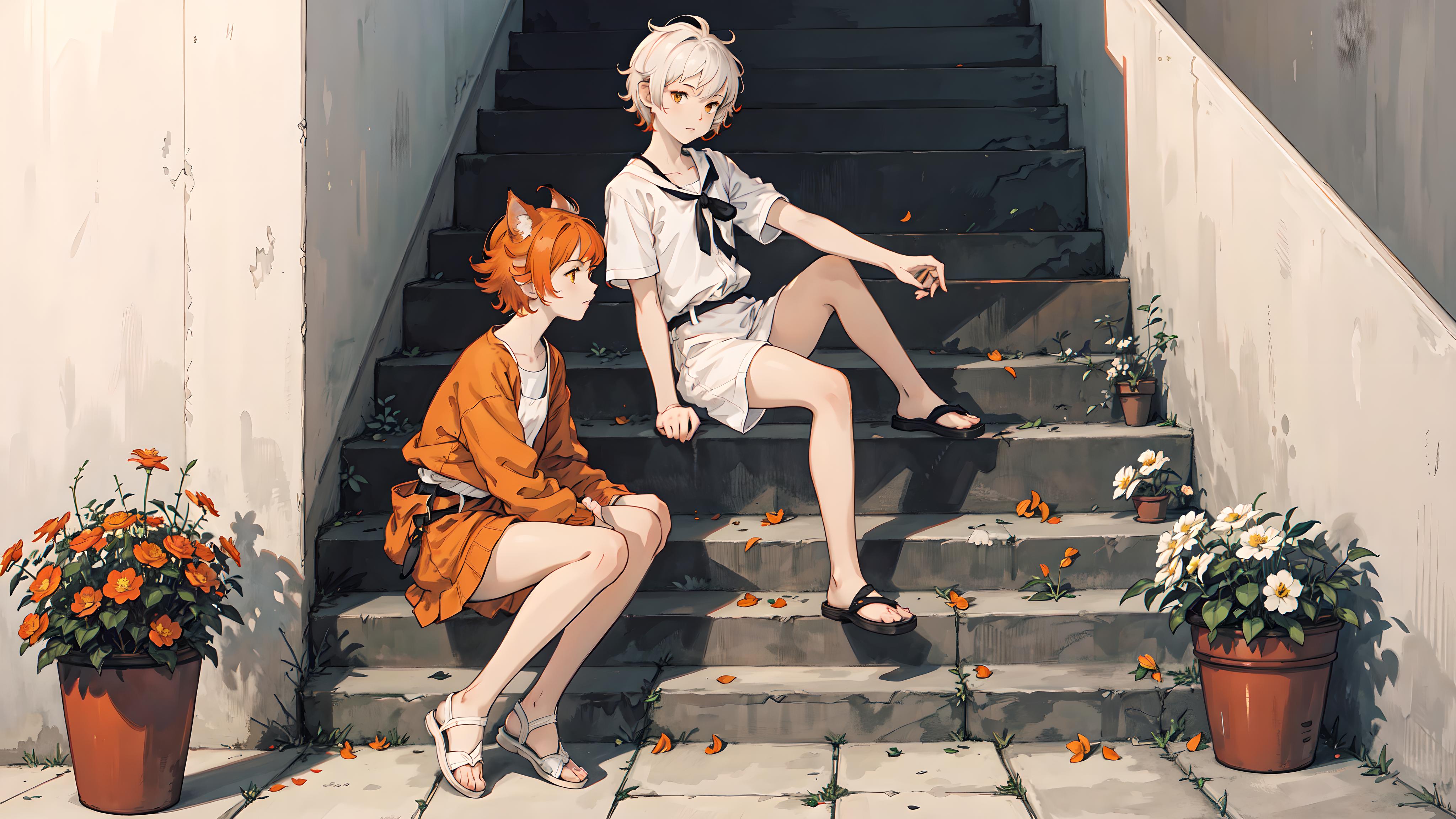 坐在楼梯上的少女
