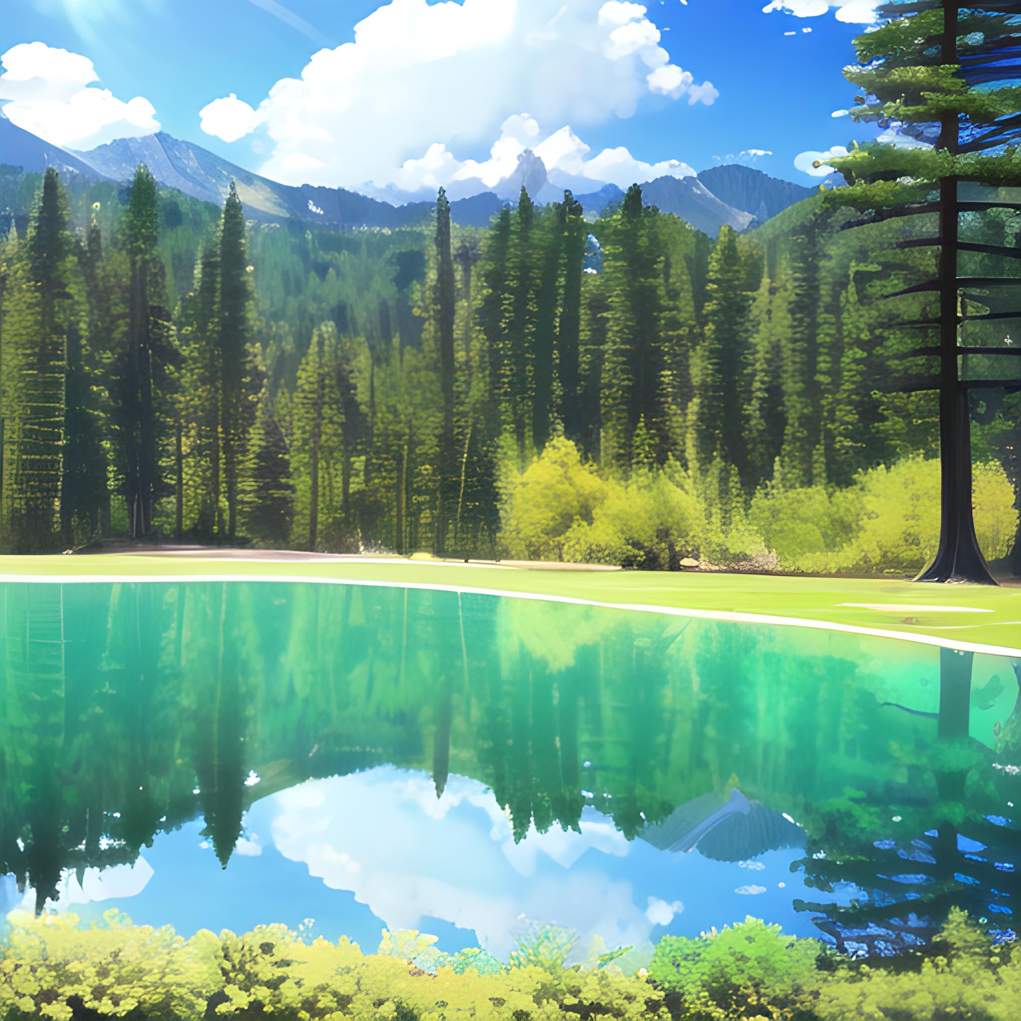 天空倒映湖面形成的很壮观的倒影,绿油油高大的松树,画质清晰,8K画质。